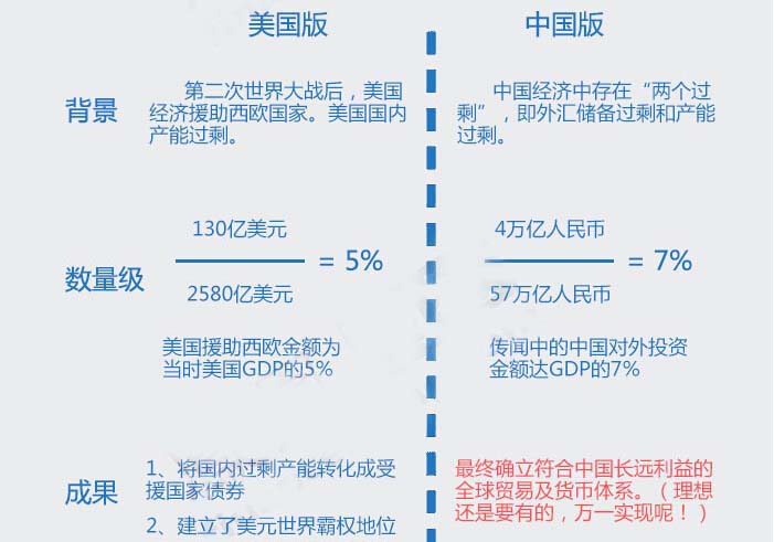 从整体来看,所谓“中国版马歇尔计划”是建立在“一带一路”规划基础上,面向东盟、中亚等地区。回望历史,二战后的马歇尔计划奠定了美国直到今天依旧不可动摇的全球霸主地位,那么“中国版马歇尔计划”能否帮助中国顺利完成经济转型,让中国过剩产能“走出去”,并最终实现民族复兴,仍需拭目以待。