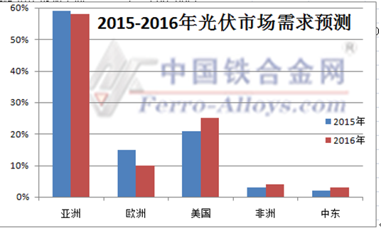 全球光伏需求受到中、美、日等主力市场及其他新兴市场的刺激,2015全年安装量约53GW,年成长近20%;预估明年可达59GW,年成长11%。EnergyTrend分析师林建翰表示,受到美国市场抢装的支撑,至明年十月都将一路畅旺。中美日约占整体市场需求61%;中国也调整应并网时间,使需求均分于上下半年,以往需求分布不均的情形将获大幅改善。虽需求成长明显,但厂商相应大幅扩产,也成为后续市场的隐忧。