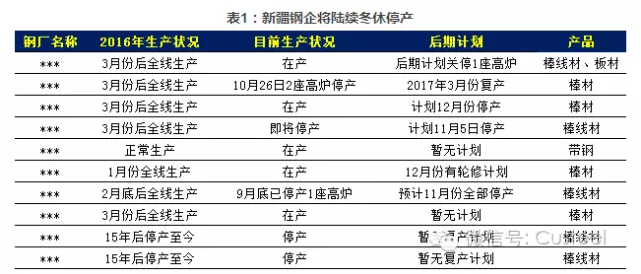 由于冬季新疆地区气候严寒,工程项目无法施工,钢材基本没有需求。目前钢铁产能严重供大于求,钢企第二、第三季度生产足以满足疆内用钢需求。冬季生产物资运输及寒冻均造成生产成本升高,钢企为了避免库存增多带来了资金压力及企业风险,选择冬休停产。