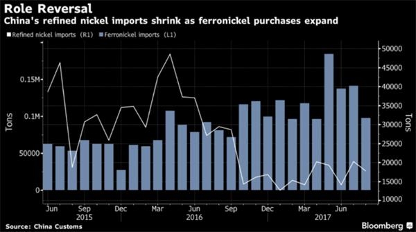 中国大多数镍生铁进口来自印尼,此前,印尼曾一度限制矿石的出口,中国企业则一直在投资矿石生产产能。