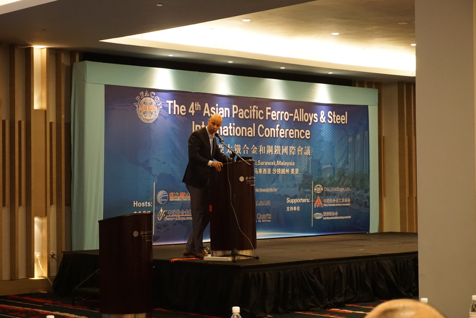 2017年9月28日上午,第四届亚太铁合金和钢铁国际会议在马来西亚沙捞越州米里顺利召开,来自中国、马来西亚、泰国、新加坡、韩国、日本、南非、赞比亚、印度、巴林、德国、挪威、土耳其等国家160多名代表出席会议!来自马来西亚沙捞越州计划部主任、马来西亚投资发展局金属部主任介绍沙捞越投资情况。本次会议由中国铁合金网董事长刘正智致欢迎辞,会议现场高朋满座,演讲嘉宾进行精彩的演讲。Lester Matthew 对“沙捞越州投资和商业机会介绍”展开演讲,分析当下沙捞越州的投资和商业机会现状。
