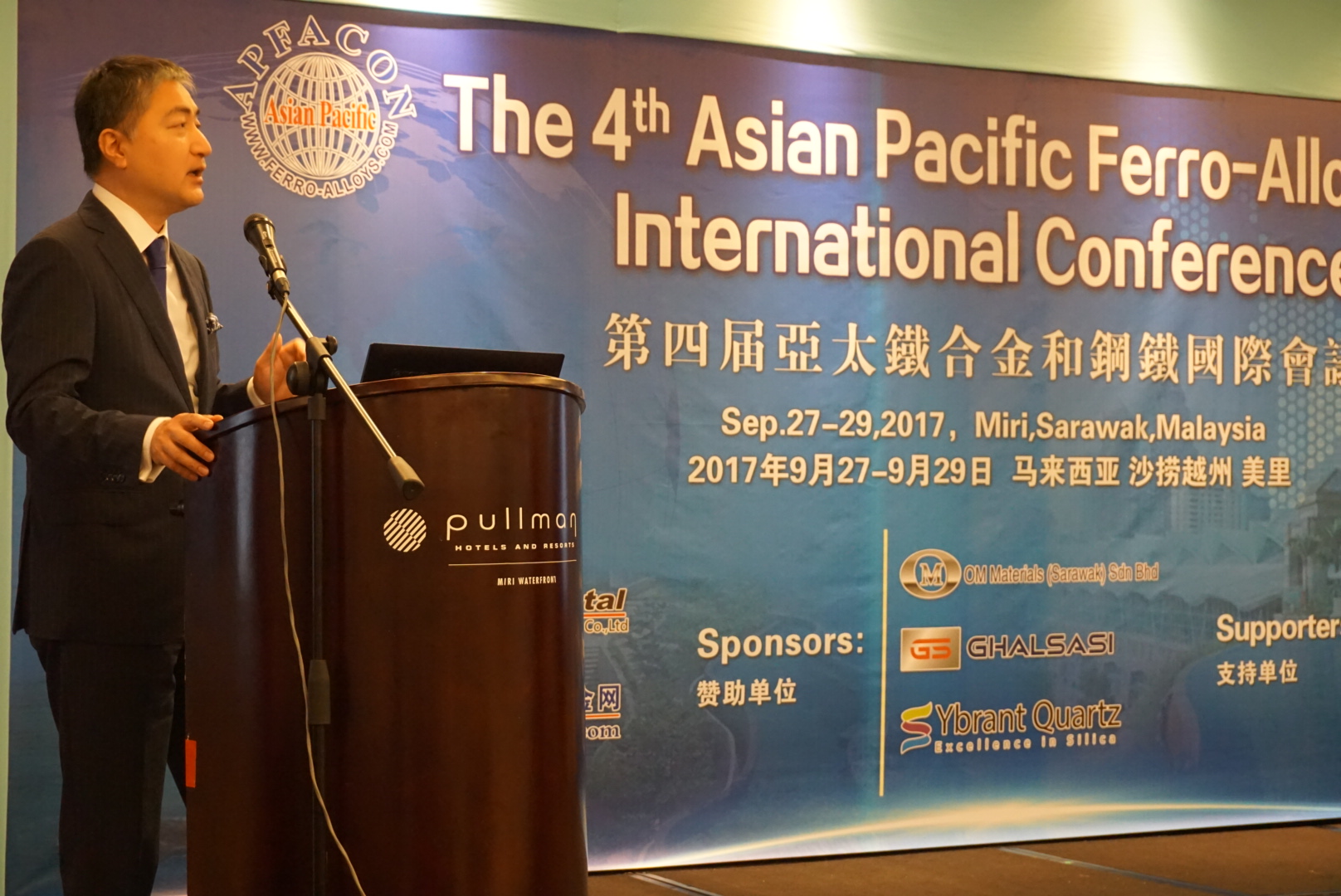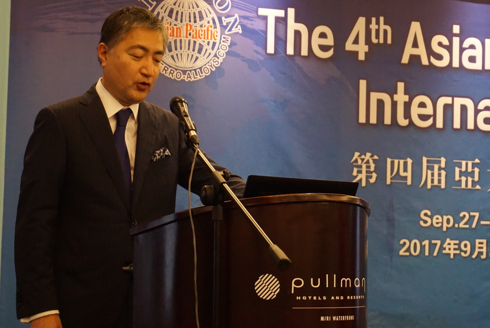日本阪和兴业株式会社社长演讲了“日本铁合金需求以及对世界铁合金市场的影响”,从Hanwa铁合金商务发展的历史展开,接着引入世界粗钢产品,以及日本钢铁产品的需求。从日本铁合金出口关税、电费、供电比例、市场需求等方面探讨,从而得出日本铁合金需求稳定并且和全球铁合金生产企业均有良好的合作关系的结论。