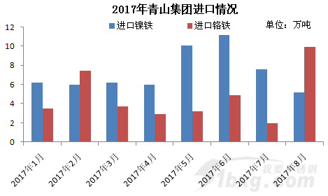 为了满足国内不锈钢的生产需求,青山一直以来大量进口原料,8月铬铁进口量创历史新高。8月,青山进口铬铁9.88万吨(占铬铁进口总量的38.1%),环比增加7.8万吨,1-8月共进口铬铁37.4万吨。