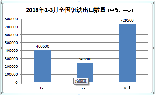 中国铁合金网讯:由于国际市场钒产品资源紧俏,价格反超国内,并且持续高于国内钒铁价格,国内钒铁出口获利空间可观,出口商更愿意将钒产品出口到国外,因此2018年一季度国内钒铁出口数量增加,钒铁(V≥75%)3月出口数量729,000千克,环比大涨203.75%,同比增长39.13 %;钒铁(V<75%)3月出口数量500千克,环比增长150%。1-3月钒铁(V≥75%)累积出口数量1,369,000千克,同比增长19.42%。1-3月钒铁(V<75%)累积出口数量1200千克。3月钒铁(V≥75%)进口数量500千克,环比持平,同比减少75%;1-3月累积进口数量1,000千克,同比减少75%。钒铁(V<75%)1-3月累积进口数量为0千克。