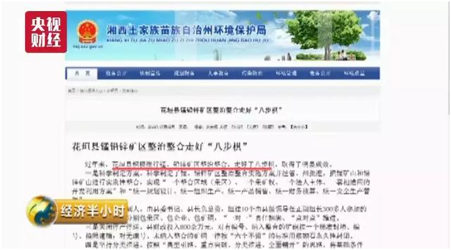 2015年,湘西州政府官网发布新闻,花垣县委,县政府,以壮士断腕的决心,按照“六个不留”的要求,对境内矿硐,污水处理,生态修复等进行了全方位整治,花垣县取得了显著成效。