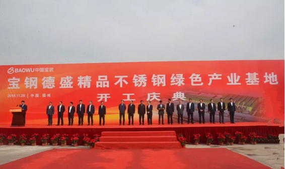 11月28日上午,宝钢德盛精品不锈钢绿色产业基地开工仪式隆重举行,标志着宝钢德盛570万吨产能规划项目正式进入施工阶段。福建省省委副书记、福州市市委书记王宁,中国宝武集团公司党委书记、董事长陈德荣,福建省副省长郑新聪,中国宝武集团副总经理张锦刚,福州市市委常委、市政府常务副市长林飞,以及来自中国宝武集团、福州市、罗源县相关部门领导、施工方、监理方等各单位人员近200人出席庆典,典礼由罗源县县委书记何杰民主持。