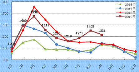 中国铁合金网讯:2019年9月,全国20个城市5大类品种钢材社会库存合计环比有所减少,并且5大品种库存均有不同程度下降。本月库存总量1331万吨,环比减少71万吨,下降5.1%;其中钢材市场库存总量1239万吨,环比减少76万吨,下降5.8%,港口库存92万吨,环比增加5万吨,上升5.5%。具体见图1、图2、图3。