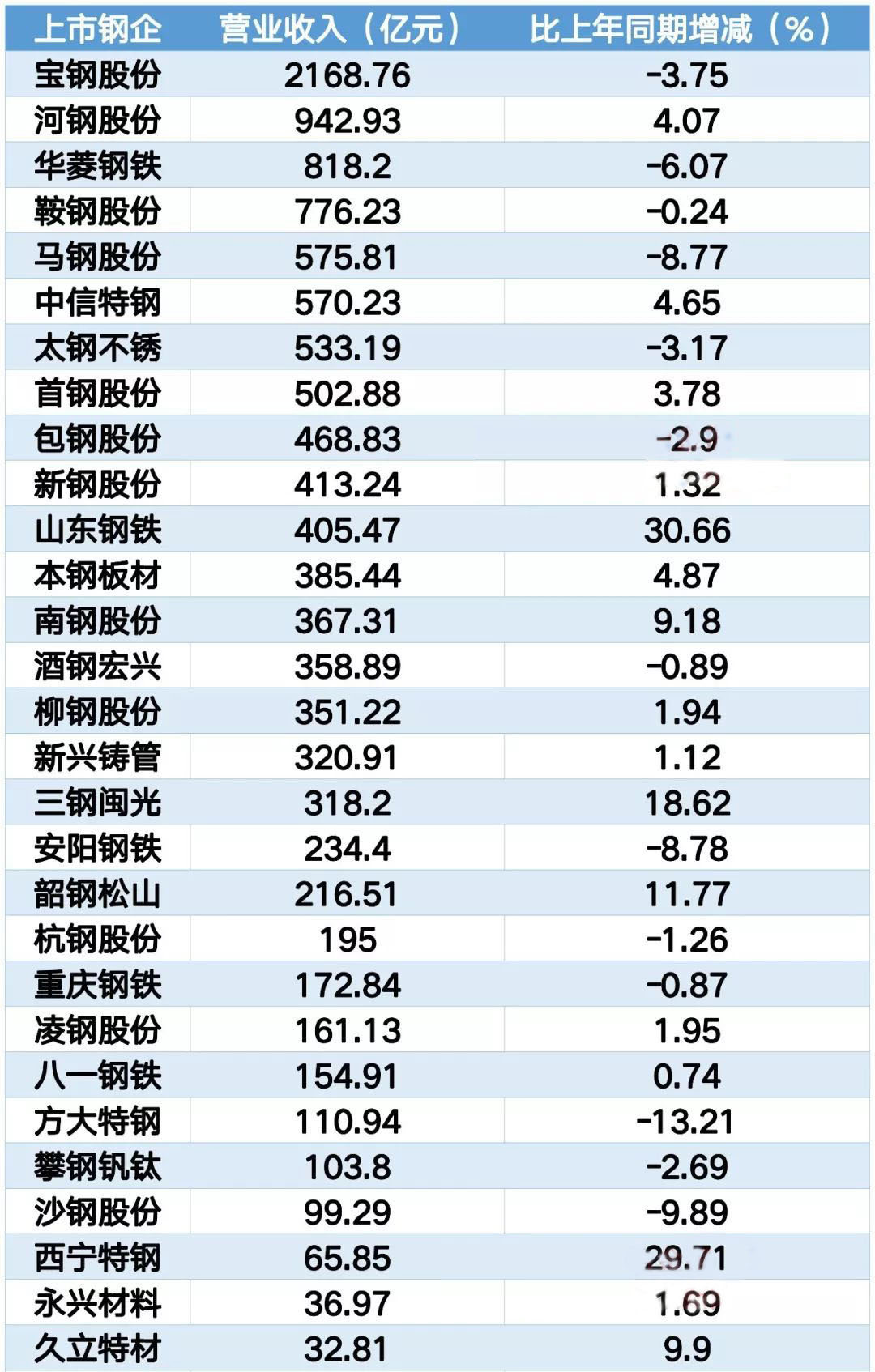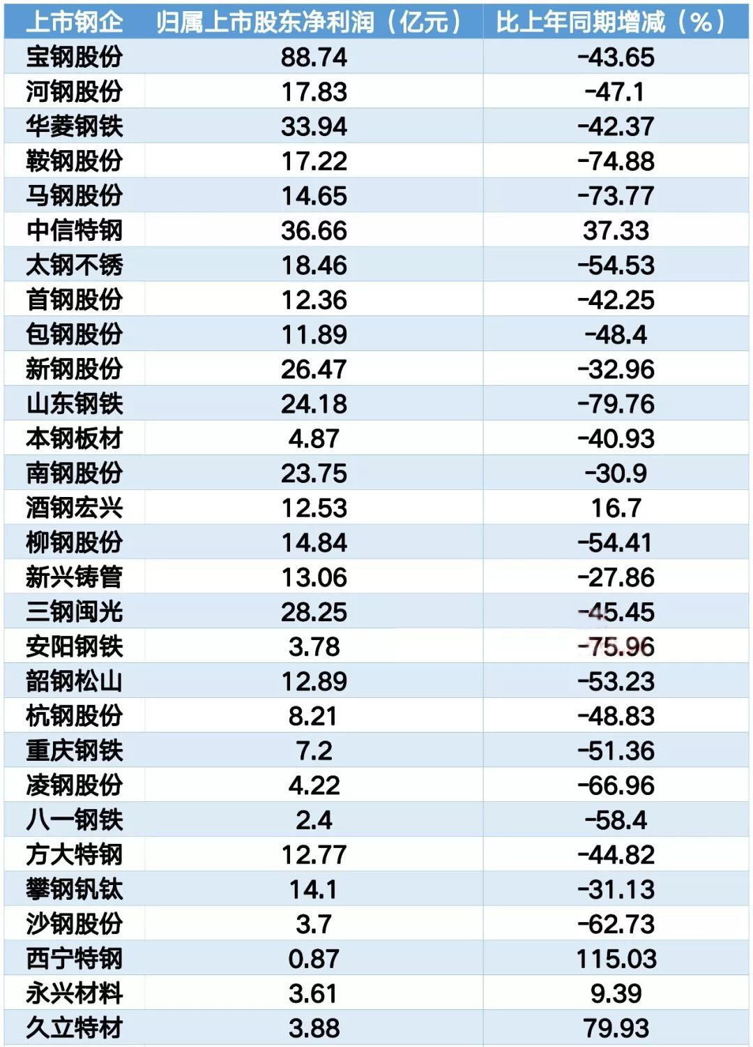 29家上市钢企前三季度的业绩数据整理如下: