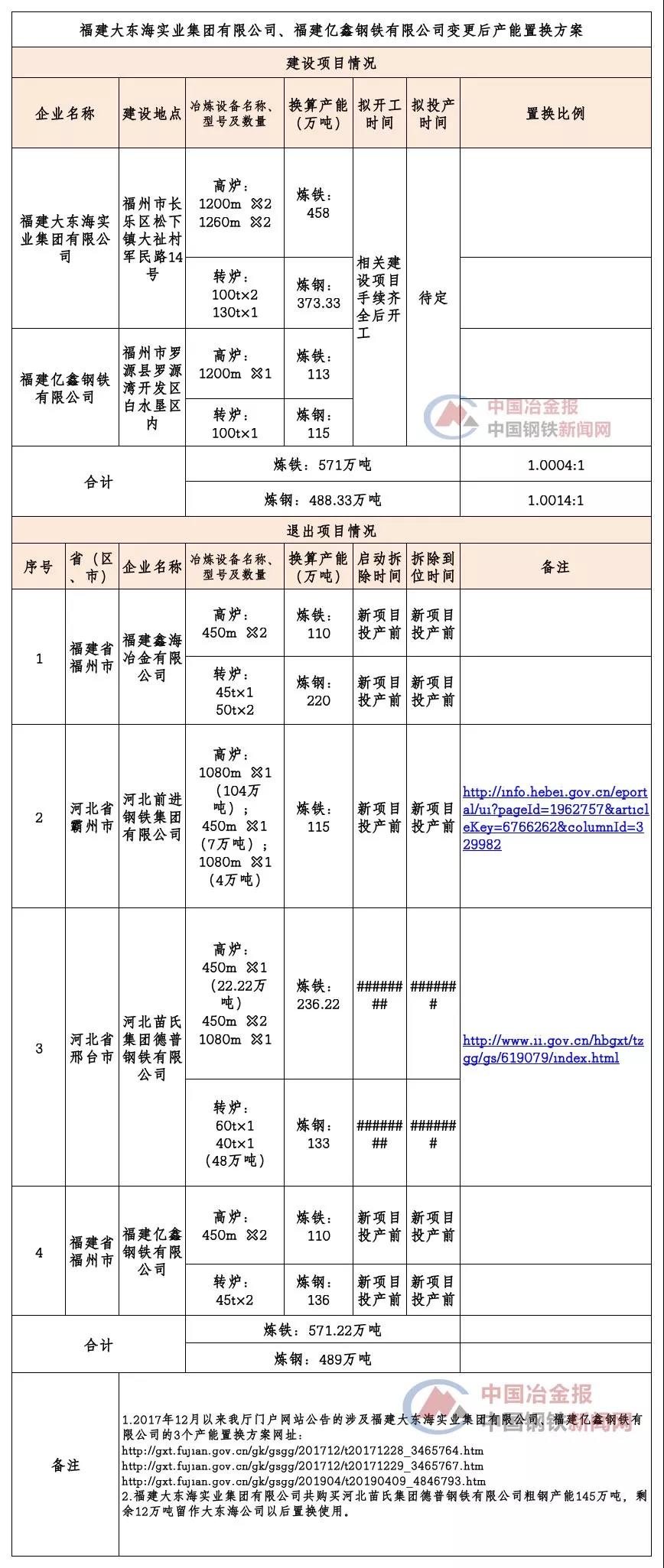 【中国铁合金网讯】11月22日,福建省工业和信息化厅发布了《关于福建大东海实业集团有限公司、福建亿鑫钢铁有限公司变更产能置换方案的公示》。