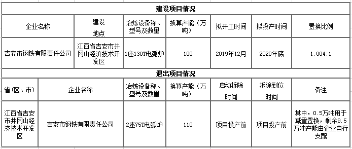 【中国铁合金网讯】2019年10月30日至2019年11月26日,按照《国务院关于化解产能严重过剩矛盾的指导意见》、《国务院关于钢铁行业化解过剩产能实现脱困发展的意见》和《钢铁行业产能置换实施办法》要求,江西省工业和信息化厅将吉安市钢铁有限责任公司电弧炉节能环保升级易地改造项目产能减量置换进行了公示,公示期间无异议,现予以公告,欢迎社会公众进行监督。