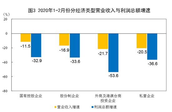 1—2月份,规模以上工业企业中,国有控股企业实现利润总额1465.4亿元,同比下降32.9%;股份制企业实现利润总额3158.8亿元,下降33.6%;外商及港澳台商投资企业实现利润总额796.3亿元,下降53.6%;私营企业实现利润总额1208.3亿元,下降36.6%。