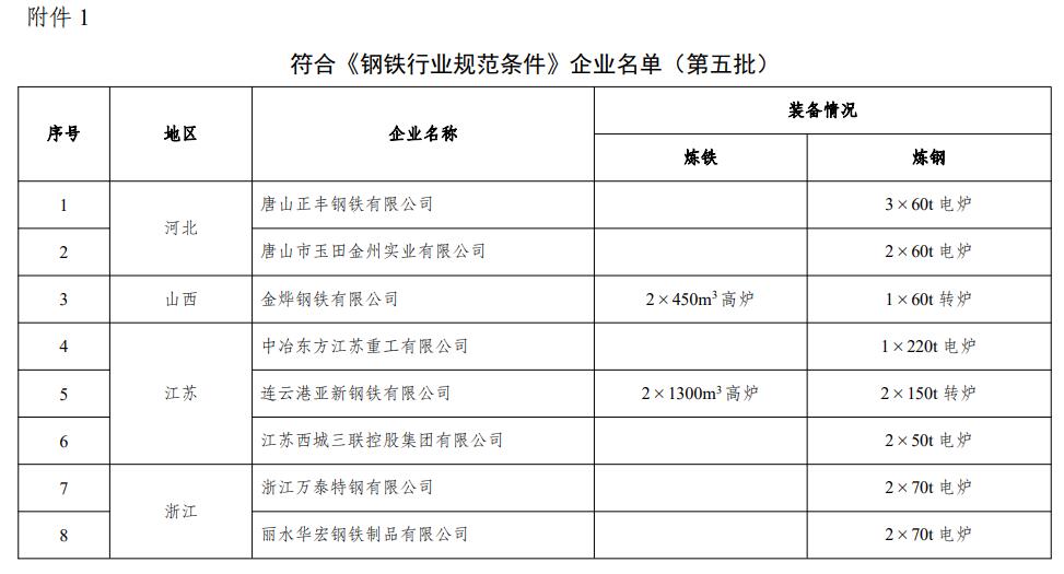 1.符合《钢铁行业规范条件》企业名单(第五批)