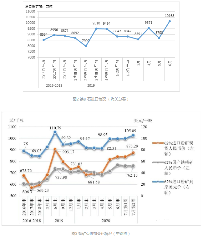 据海关总署数据,今年1-6月份,累计进口铁矿砂及其精矿54691万吨,同比增加9.6%;其中6月份,铁矿砂及其精矿进口达到10168万吨,环比增长16.8%,同比大幅增长35.3%。供给方面,年初为传统发货淡季,叠加澳大利亚飓风与巴西雨季影响,两国出口的铁矿石发货量一度处于五年内低点。4月份以来,随着国内疫情逐步向好,下游行业复工复产加快,特别是国家推出的一系列稳增长措施提升了市场预期,带动用钢需求加速回升,铁矿石需求不断增加,进口量和进口价格波动上涨。