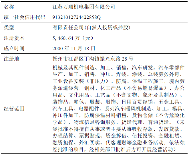 万顺集团曾获得全国工商联评选的全国民营企业500强,业务遍及汽车、石化等行业,在汽车配件加工领域拥有丰富产品经验,万顺集团的基本情况如下: