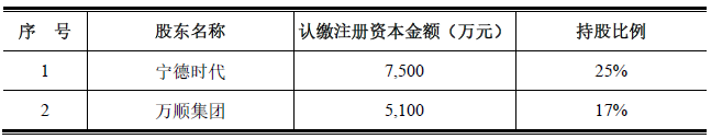 2.3各方同意,自取得目标公司营业执照之日起60日内,除万顺集团外,各方各自缴付其认缴的目标公司注册资本额的20%至目标公司开立的专门的资本金账户,即宁德时代缴付1,500万元,三祥新材缴付2,100万元,隽达投资缴付540万元,银泰投资缴付840万元。同时,经各方一致确认,自取得目标公司营业执照之日起60日内,万顺集团缴付600万元。剩余部分的具体出资时间按照项目进度经目标公司董事会决定后由各方同时出资。各方均以货币出资。