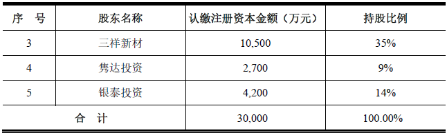 4.2 目标公司高级管理人员由总经理、副总经理、财务负责人组成;其中总经理1名由三祥新材提名;财务负责人1名由宁德时代提名;副总经理(分管技术)1名,由隽达投资或银泰投资提名。同时,根据目标公司需要并经全体股东同意可另设其他副总经理。