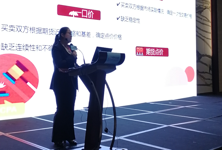 针对套期保值的原理、定义、目的及案例,基差交易和含权贸易的逻辑、风向管理、操作模式等,李娟女士在会上进行了详细讲解和介绍。