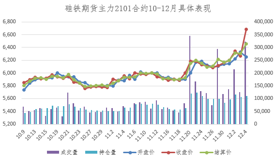 【期货行情】本周最后一个交易日,硅铁期货主力合约2101涨停!本周开盘价6,138,最高价6,682,最低价6,110,收盘价6,682,结算价6,458,成交量918,400,持仓量110,698,涨幅7.50%。