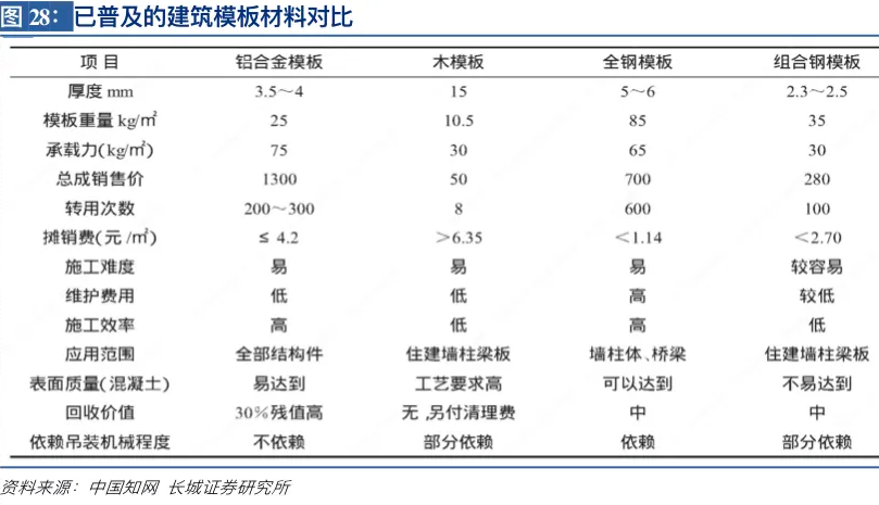 镁合金建筑模板近年来在相关企业推动下不断发展。与铝合金模板相比,镁合金模板在保持使用周期长、可回收等优点的基础上,重量更轻,耐碱腐蚀能力更强。此前由于镁价较铝价更高,镁合金模板在成本上存在一定的劣势,但随着镁价下行,目前镁合金比铝合金成本更低,镁合金模板对铝合金模板的小规模替代或将逐步开启。