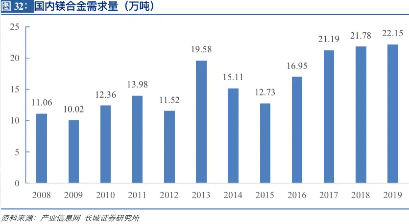 4.1汽车单车用镁量不断提升 近年来镁需求量稳定增长