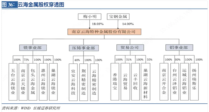 5.1 云海金属:镁业龙头与宝钢金属深度绑定 龙头地位有望进一步巩固