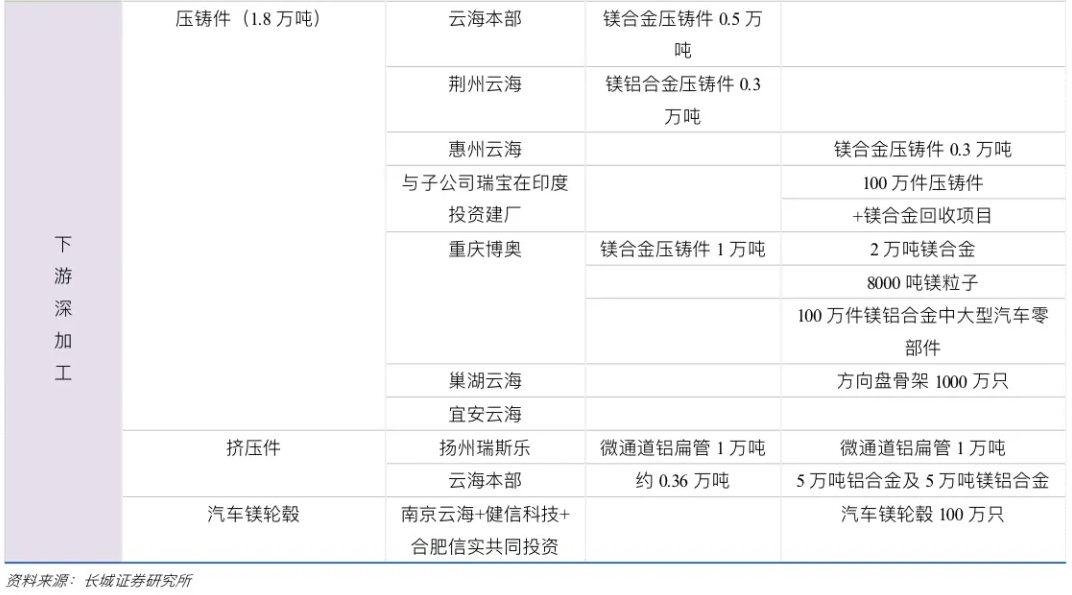 公司11月24日发布公告,公司与宝钢金属、安徽省池州市青阳县人民政府签订高性能镁基轻合金及深加工项目合作框架,拟共同投建年产30万吨高性能镁基轻合金及深加工项目,项目固定资产投资为104亿元人民币,涉及建设年产 30 万吨高性能镁基轻合金、15 万吨镁合金深加工产品、100 万吨熔剂、2500 万吨骨料及机制砂项目。