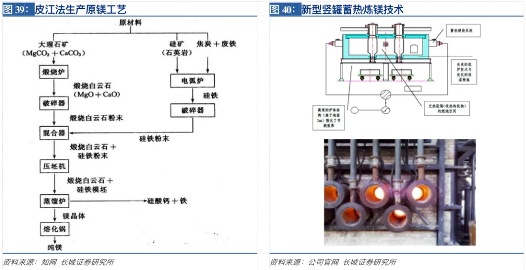多项核心技术傍身 环保节能效益高:原镁生产分为以菱镁矿、光卤石或海水为原料的熔盐电解法与硅热还原法(皮江法),目前国内原镁几乎均采用皮江法生产,然而大多厂家均存在规模小、设备工装落后、能耗污染大、成本高、质量不稳定等缺陷,公司针对这些不足研发出“短流程粗镁一步法”生产优质原镁:劳动生产率提高1倍,冶炼总耗能降低30-40%,吨镁CO2减排5-8吨,原镁成本降低20%以上;同时自主研发“竖罐蓄热式燃烧技术”,比普通燃烧方式节能30%左右;并开发建设大型生产线,极大地提升了公司机械自动化生产效率。