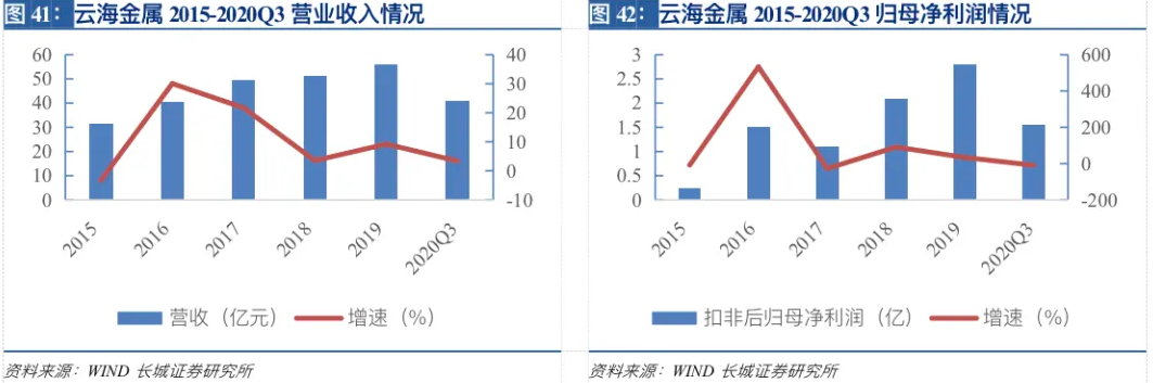 2019年公司实现营收55.72亿元,同比增长9.23%;扣非后归母净利润2.79亿元,同比增长33.71%,得益于镁、铝产品销量提升,公司业绩保持高速增长。2020年前三季度公司实现营收40.69亿元,同比增长3.36%;扣非后归母净利润1.54亿元,同比下滑9.18%,主要由于今年以来镁价处于历史低位,影响公司镁业务盈利能力。