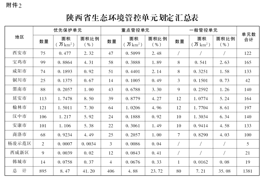 2.陕西省生态环境管控单元划定汇总表