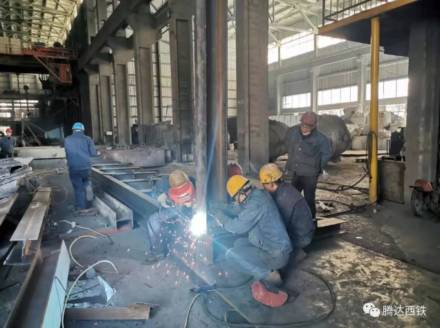 第一冶炼厂平台扩建工程主要针对捣炉车的有效作业空间和行车安全保障问题进行设计施工,充分考虑了扩建区域与炉前工艺设备的安全距离、炉台承载的最大负重力等诸多因素。在安全技术交底后,分厂机械维修工段分别在四台电炉5米作业平台外侧对接安装了钢制平台,实现了空间的有效利用。