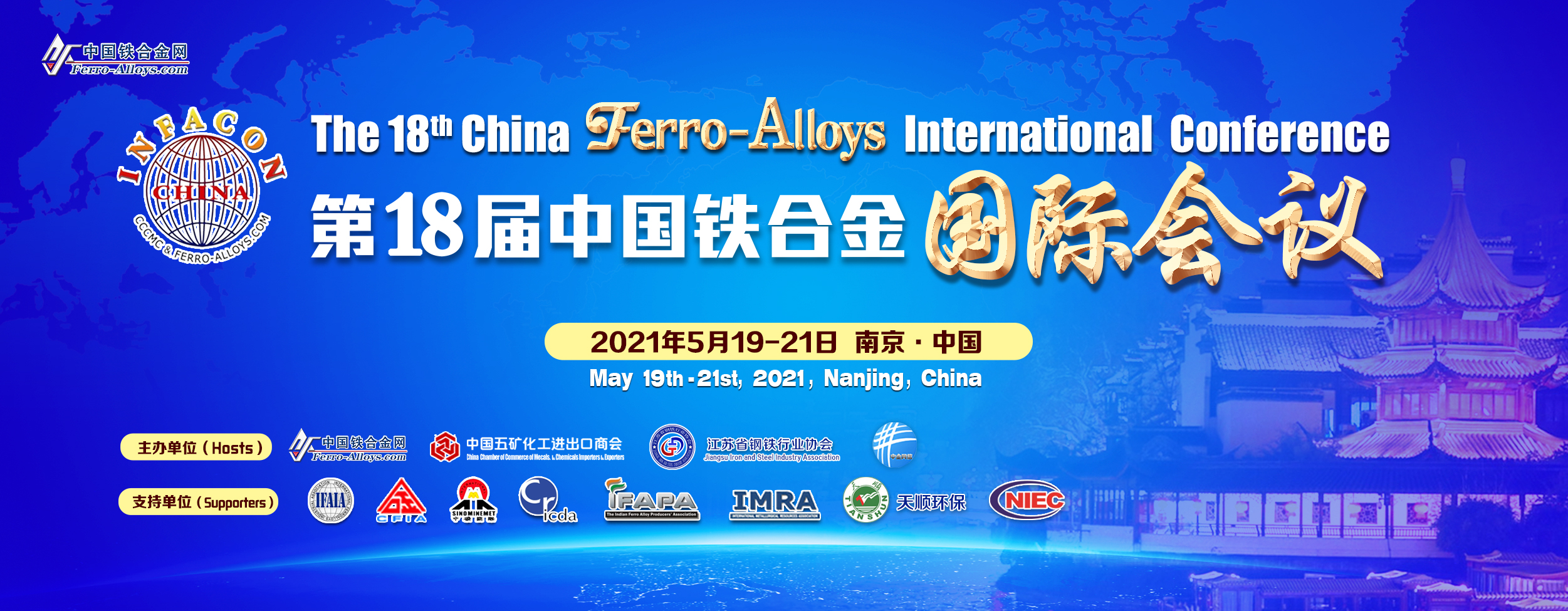 由中国五矿化工进出口商会(CCCMC),江苏省钢铁行业协会和中国铁合金网共同主办,江苏有色金属进出口公司协办的“第十八届中国铁合金国际会议”即将于2021年5月19日-21日在南京召开。 诚挚邀请国、内外锰矿、铬矿、镍矿矿石供应企业、铁合金生产企业、煤焦、碳素、电极生产企业、钢铁企业以及其他服务配套企业的代表莅临本届盛会。