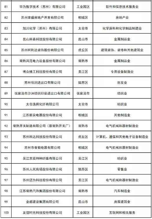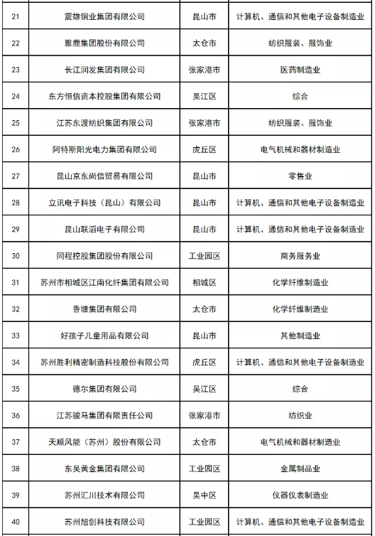 据了解,截至目前,苏州市共有民营企业71.8万家,占企业总数的90.2%,是科技创新、税收贡献、境外投资的主导力量。3家企业入围2021年《财富》“世界500强”,占全省75%;28家企业入围“2020中国制造业民营企业500强”、26家企业入围“2020中国民营企业500强”,上榜企业数分别位列全国城市第一和第二。