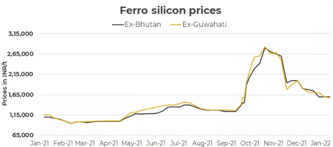 需求疲软,印度硅铁价格小幅下跌,买卖双方都在等主要招标价格确定后再入场。上周四(1月13日)古瓦哈蒂70硅铁出厂价格环比下降1500卢比/吨至15.8万卢比/吨,而不丹硅铁价格为15.96万卢比/吨。上周约有1000吨硅铁成交。
