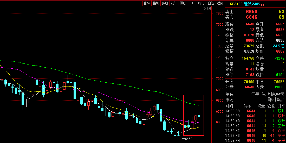 期货端:本周2405主力合约开盘价6570,最高价6682,最低价6520,收盘价6648,结算价6660,持仓量154750,成交量471006,成交金额155.493亿元,涨幅1.84%。