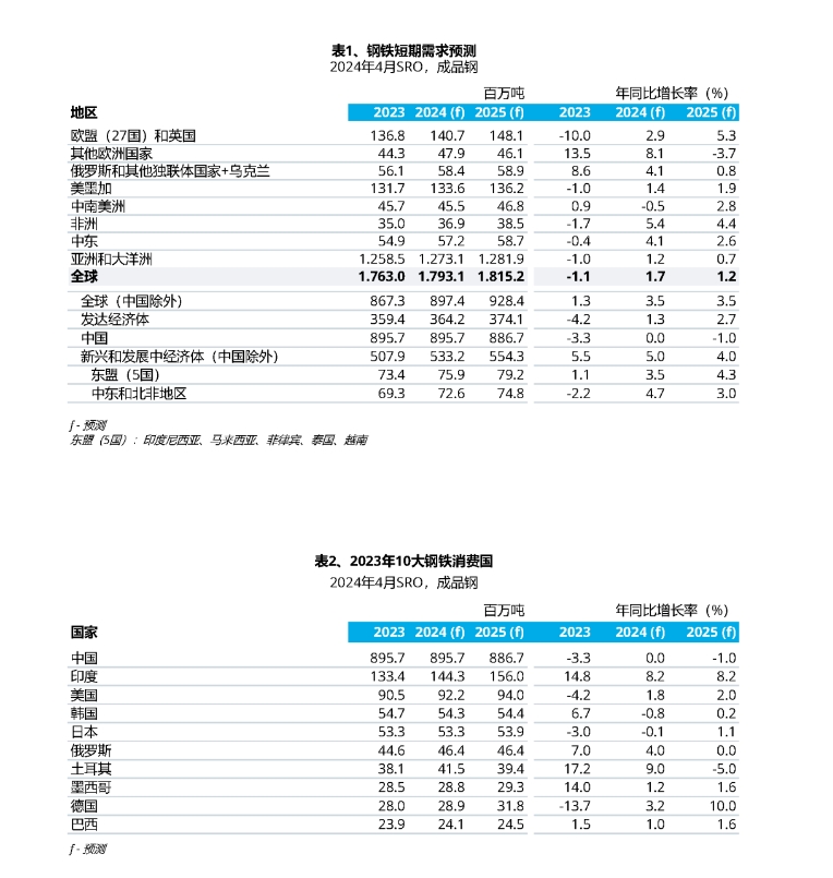 2024年至2025年期间,全球(中国除外)钢铁需求将出现相对较强的宽幅增长,增幅为每年3.5%。