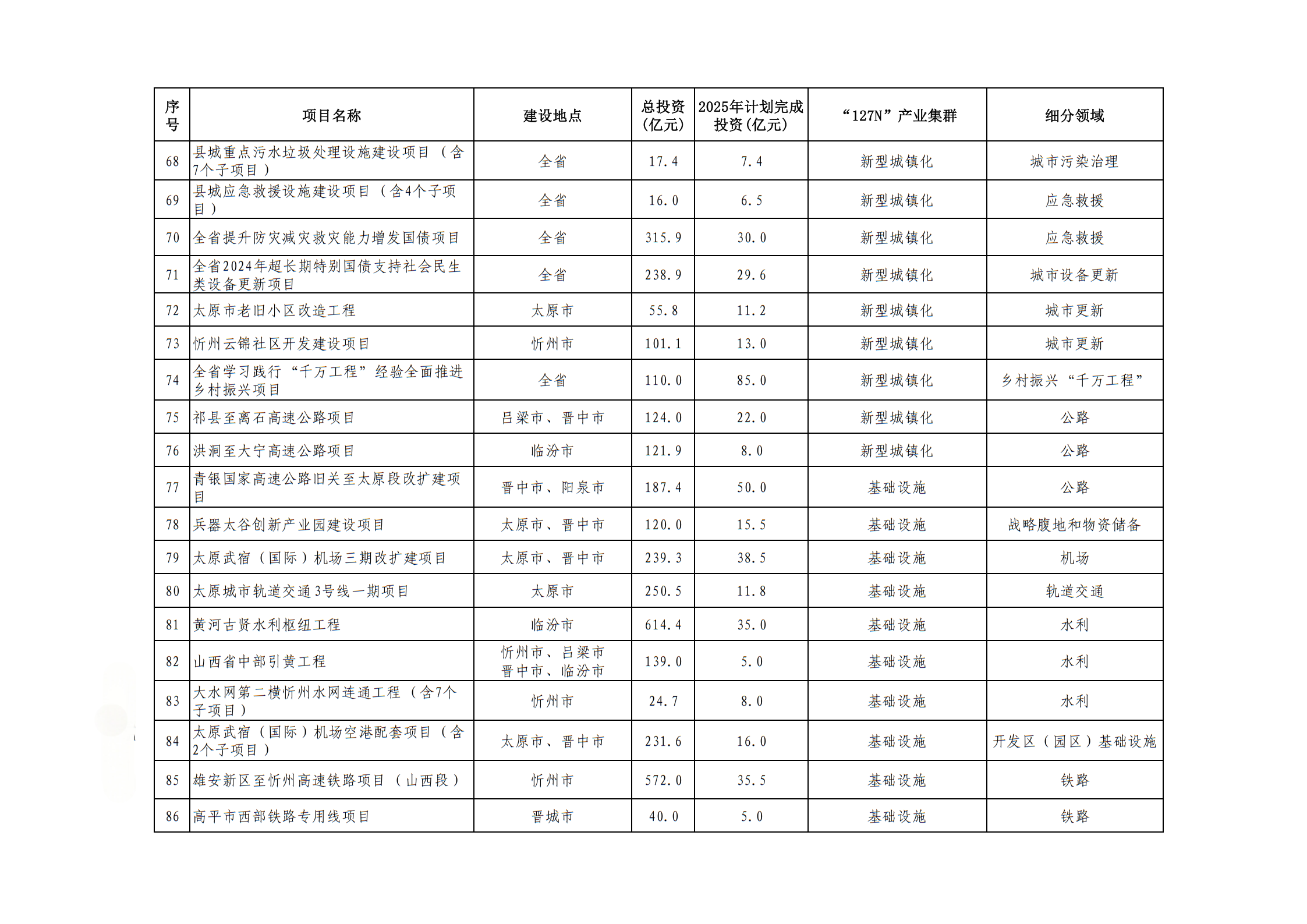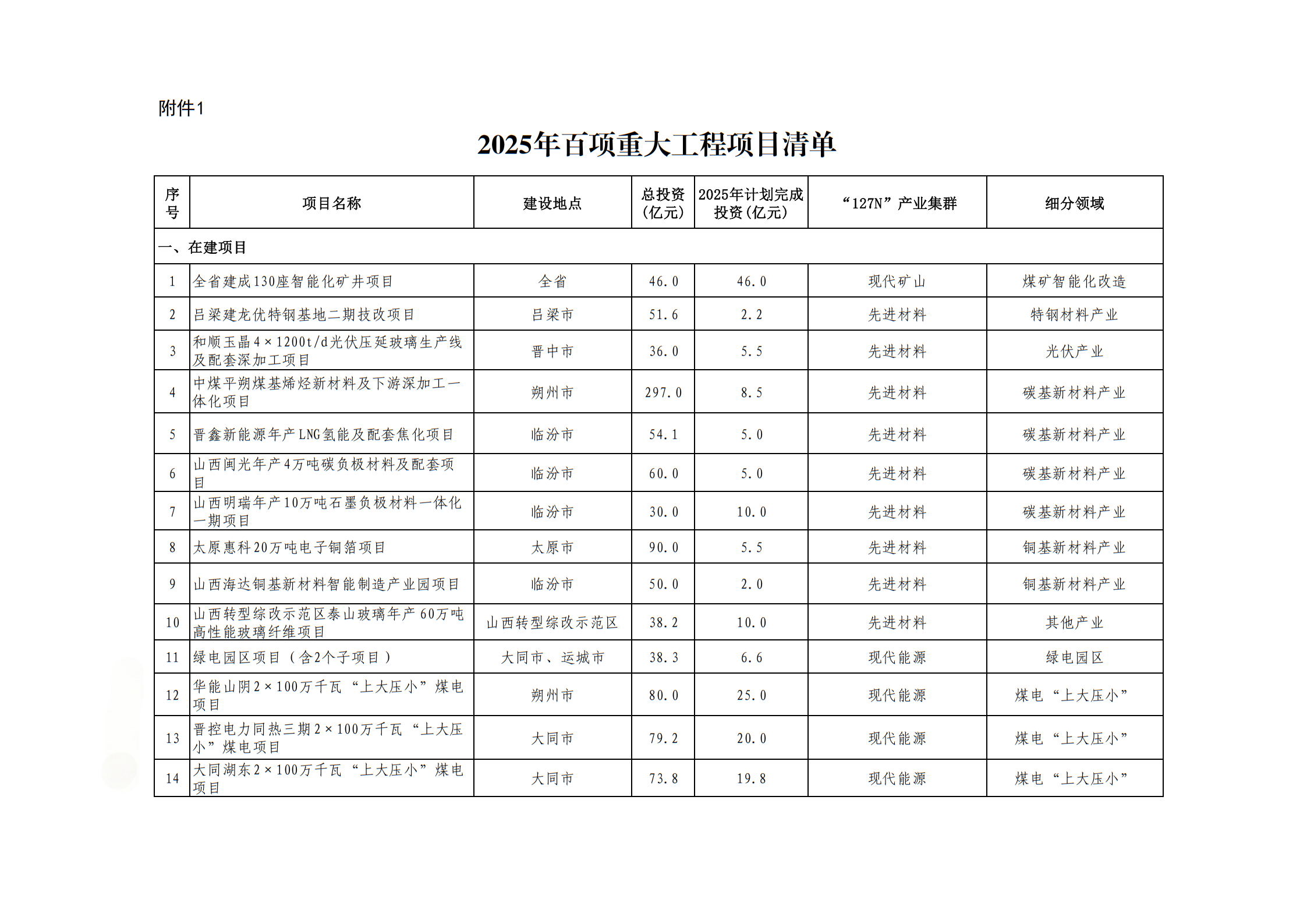 山西省人民政府办公厅关于印发山西省2025重大项目建设年行动方案的通知
