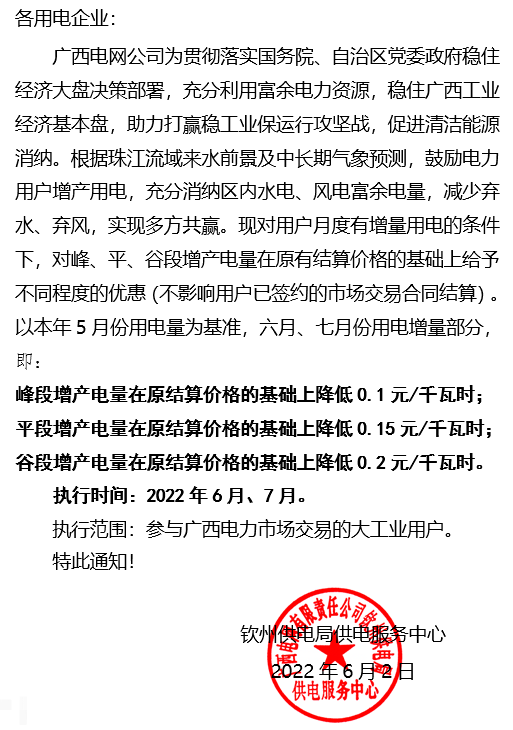 经研究,此次阶段性降电价范围为电压等级不满1千伏、由电网企业代-理购电的工商业用户,降价措施为自2022年6月1日至12月31日。 |