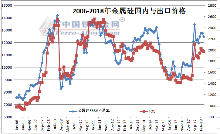 中国铁合金网讯:国内金属硅价格弱势进行,本周国内金属硅553#不通氧价格区间为12500元/吨-12700元/吨,昆明地区价格为12400元/吨-12500元/吨,黄埔港价格为12600元/吨- |