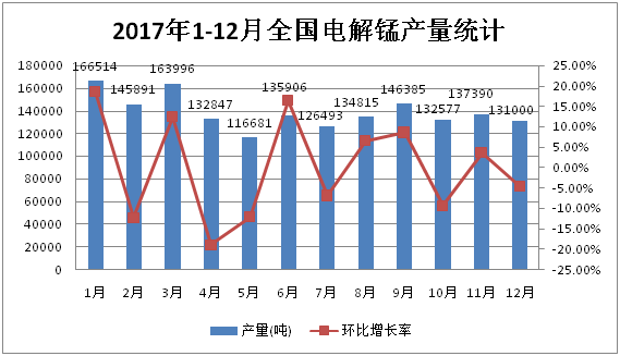 今日,电解锰南方地区主流报价在11500-11700元/吨,部分中小型锰企报价11800-12000元/吨;北方大型锰厂自12月28日停产,计划1月10日开工,开工已延至1月15号以后,15号以后报价12000元/吨。 |