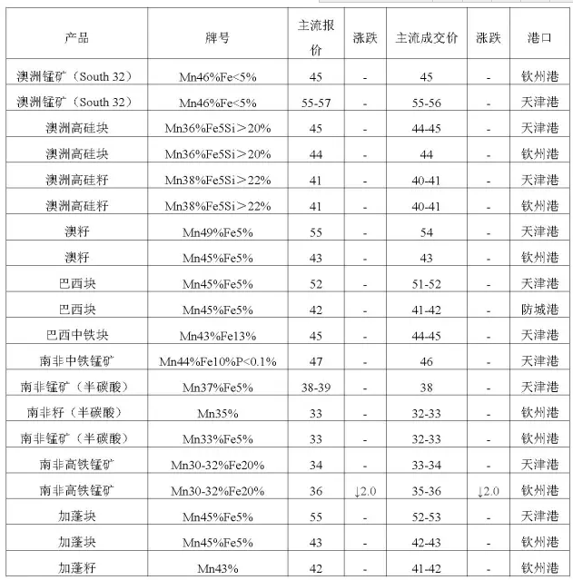 锰矿:专家认为BHP调高9月期货价格已经失去意义