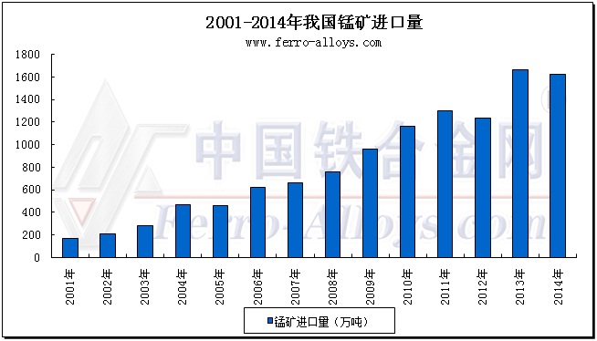 2013年南非取代澳大利亚坐上我们第一大锰矿进口商交椅。澳大利亚锰矿占我国锰矿总进口量的份额也从2006年至2007年的高位42%-46%降至2014年的不到32%左右。 |
