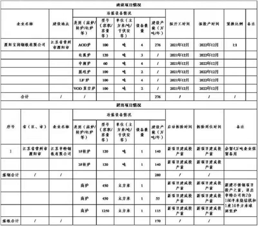 11月3日,因该产能置换方案“公示期间未收到异议”,故“溧阳宝润钢铁有限公司高端不锈钢项目产能置换方案”正式予以公告。 |