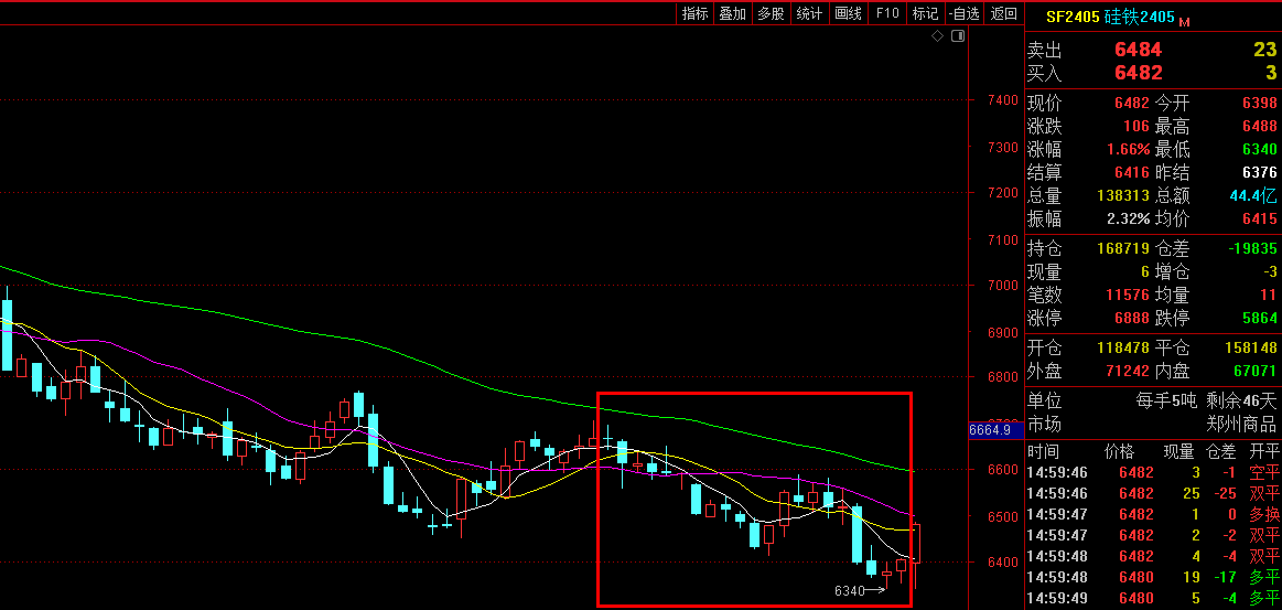 5月30日上午,硅铁期货主力合约应声涨停,最高价7824元/吨,涨幅8.01%;31日盘面收盘8108元/吨,涨幅5.27%;厂家多暂停报价。 |
