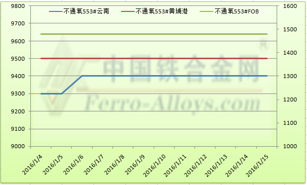 中国铁合金网讯:作为国内主要金属硅生产区,12月份云南,四川地区停炉企业增加,对于后期市场厂家视情况而定,目前国内价格差异不大,而2015年国内金属硅市场价格跌至历年最低价位,本周国内价格处于稳定,港口价格保持11月底价格,目前黄埔港口不通氧553#价格在9400元/吨-9600元... |