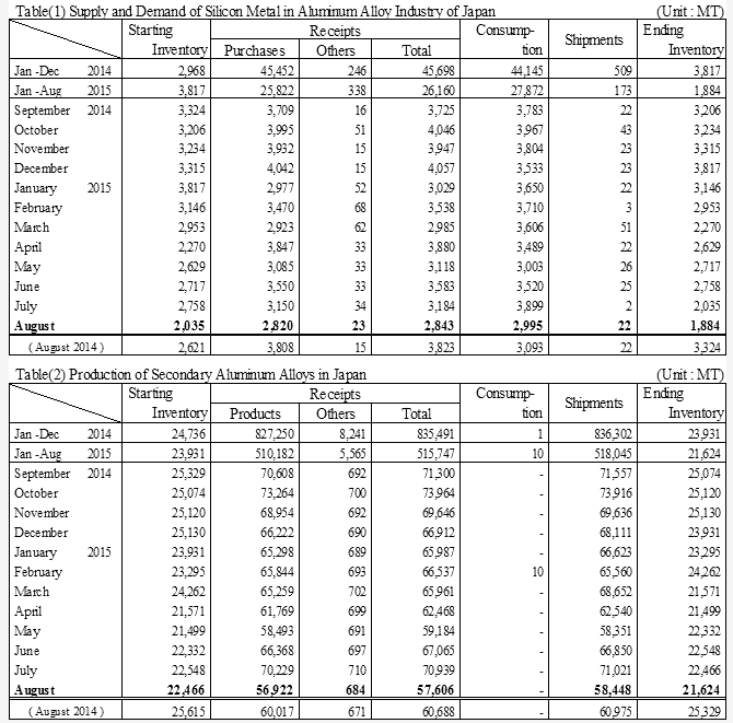 金属硅:日本8月份消费量环比下降23.2%