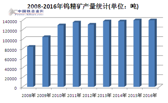 中国铁合金网讯:2016年,铁合金行业积极贯彻党中央、国务院关于稳中求进和供给侧结构性改革的工作部署,基本实现了平稳增长。2016年,全国十种有色金属产量合计5283万吨,同比增长2.5%,其中,钨精矿(折三氧化钨65%)14.0万吨,与2015年钨精矿年产量持平。 |