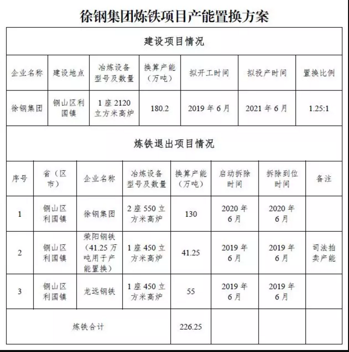 关于徐钢集团炼铁建设项目产能置换方案的公告
