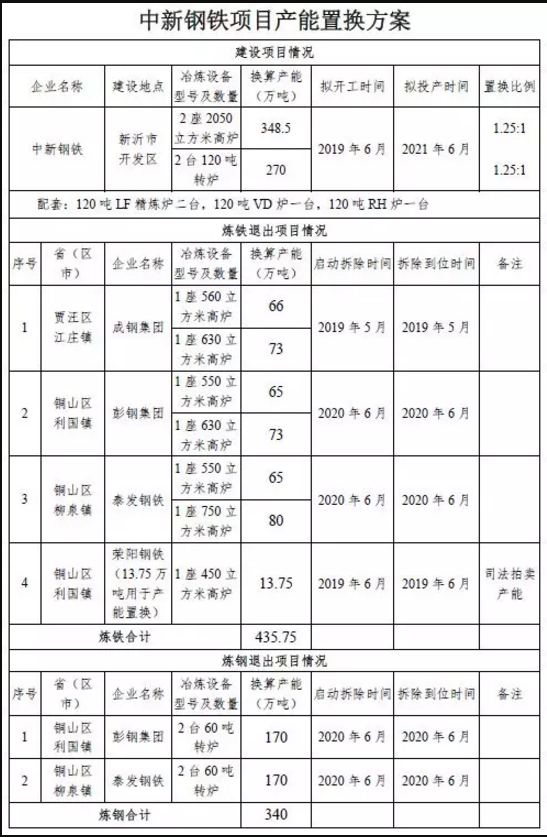 关于中新钢铁集团有限公司钢铁冶炼项目产能置换方案的公告