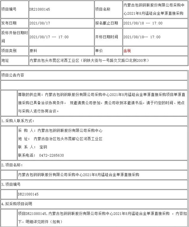 7月内蒙地区硅锰6517#产量环比下降约29.7%