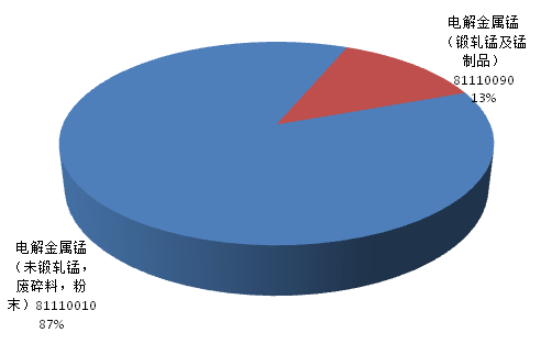 2016年10月中国锰及其制品(包括废碎料)出口34,674.76吨 其中电解锰占比为87%